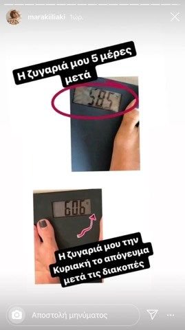 Όμως η Μαρία δεν το έβαλε κάτω και μέσα σε μόλις 5 μέρες έχασε τα όποια κιλάκια και η ίδια έδειξε το αποτέλεσμα των κόπων της, όπως το απεικονίζει η ζυγαριά της.