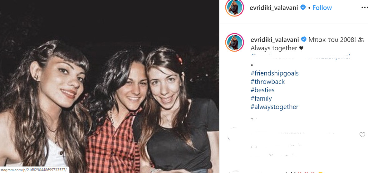 Η Ευρυδίκη Βαλαβάνη πριν από λίγες μέρες θέλησε να μας γυρίσει πίσω στο χρόνο και ανέβασε στο Instagram, μια πόζα της στην οποία έχει πλάι της δύο καλές φίλες της με τις οποίες κάνει παρέα ακόμα και σήμερα.