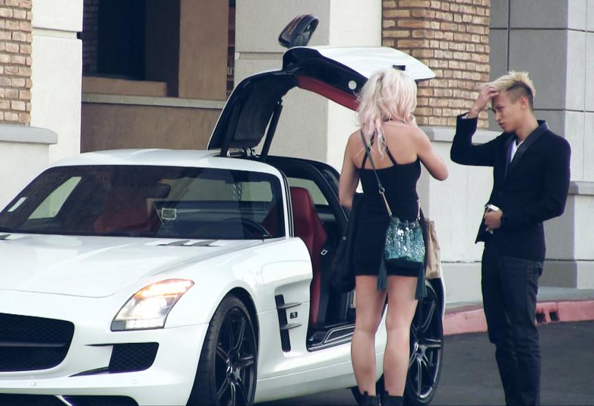 Το εντυπωσιακό είναι πως η γυναίκα αμέσως παρατάει τον δεύτερο άνδρα και πλησιάζει το πανάκριβο αυτοκίνητο για να μιλήσει με το νεαρό που είχε αρχικά απορρίψει.
